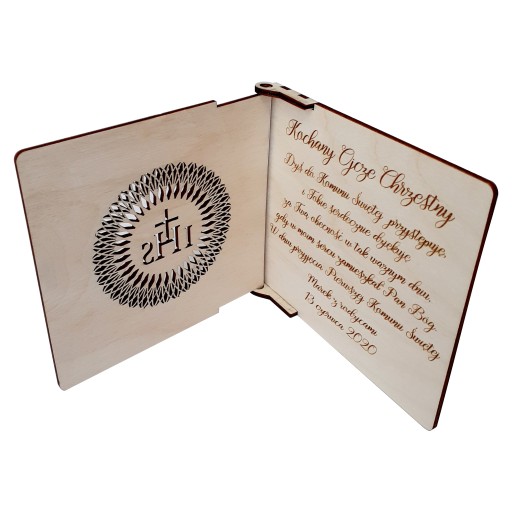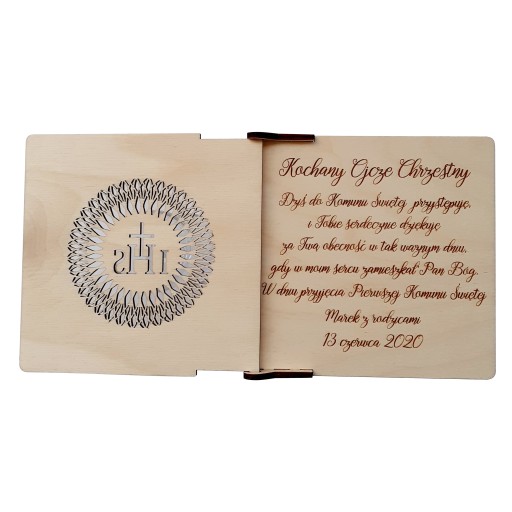 Podziękowanie wykonane jest ze sklejki o grubości 3mm. Napisy dedykacji są grawerowane laserem.