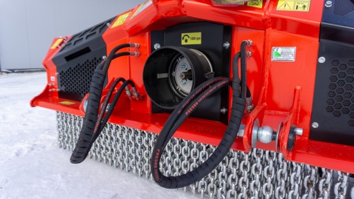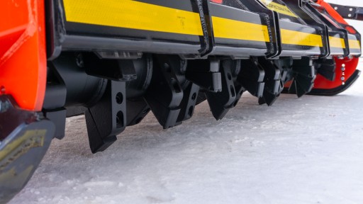Ciężkie ogniwa łańcuchowe, dwurzędowe, rozmieszczone po całej długości roboczej, istnieje możliwość zainstalowania ekranu czterorzędowego.