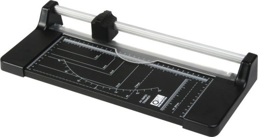 Obcinarka krążkowa do formatu A4. Estetycznie zaprojektowana z bardzo czytelnym szablonem formatów i podziałką milimetrową. Posiada plastikową listwę docisku.