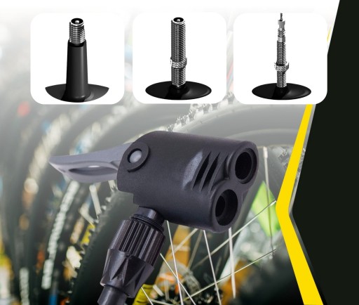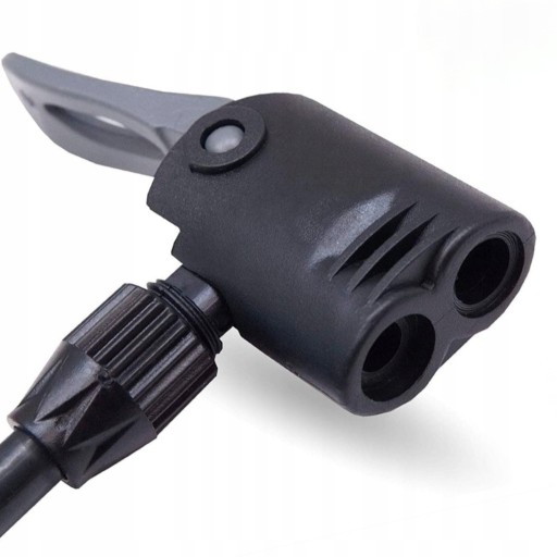✅ zapewniający zapięcie węża na wentyl. Dźwignia do blokowania blokuje główkę pompki na wentylu,