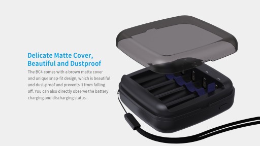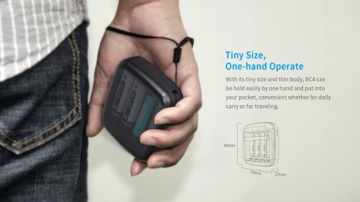 Kompaktowe rozmiary oraz pokrywa komory ładowania to 2 dość ważne atuty ładowarki BC4. Dziękie połączeniu tych 2 rzeczy otrzymujemy mobilną ładowarkę z funkcją powerbanka oraz latarki. Dodatkowo w zestawie jest także smyczka, która ułatwi jej przenoszenie.