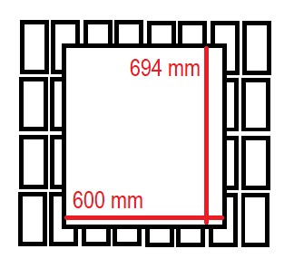 DŁUGOŚĆ PIECA CHLEBOWEGO WEWNĄTRZ ~ 694 MM
