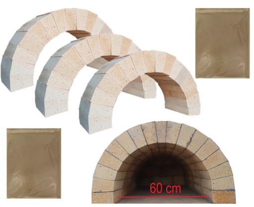 - KLINY A- 42 SZT.+ KLINY B - 9 SZT. – KLINY SZAMOTOWE NA SKLEPIENIE PALENISKA (3 ŁUKI PO 17 KLINÓW , W TYM DO KAŻDEGO ŁUKU PO 14 KLINÓW A I 3 KLINY B)