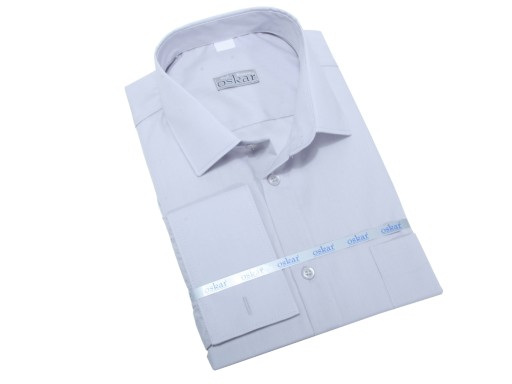 Najwyższej jakości koszula grafitowa, z długim rękawem z mankietem zapinanym na spinki lub guziki.