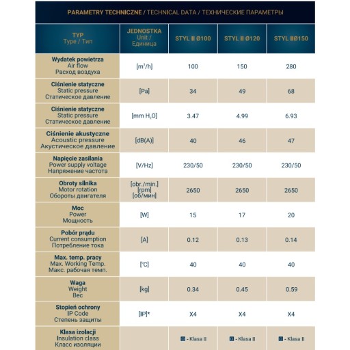 - wysoki stopień ochrony IP x4 zapewnia idealne rozwiązanie dla wentylacji łazienki