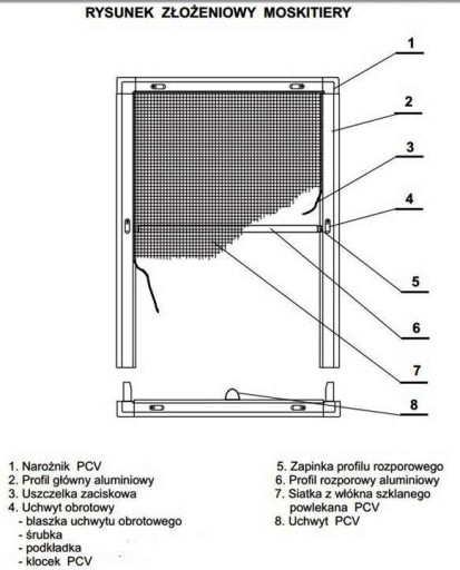Do złożenia moskitiery okiennej potrzebujemy kolejne elementy