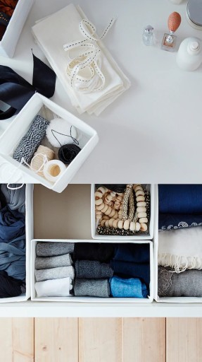 Pomaga uporządkować skarpetki, paski czy biżuterię w szafie lub komodzie.