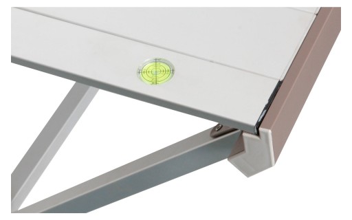 Jedna noga z blokadą położenia, co pozwala na wypoziomowanie stołu praktycznie w każdym terenie