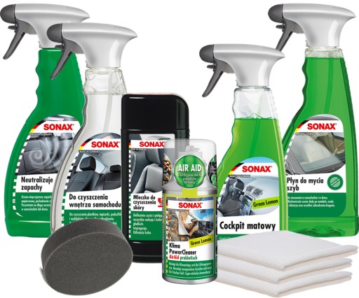 SONAX - zestaw sześciu kosmetyków samochodowych do wnętrza pojazdu z tapicerką skórzaną: