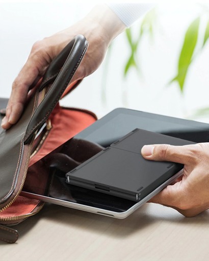 Składana bezprzewodowa klawiatura Bluetooth jest wyposażona w akumulator litowo-jonowy.