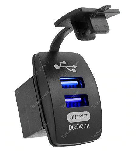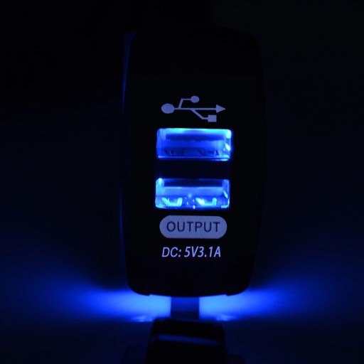 Монтажная розетка USB x2 3100 мА 12–24 В СИНЯЯ