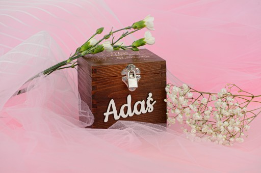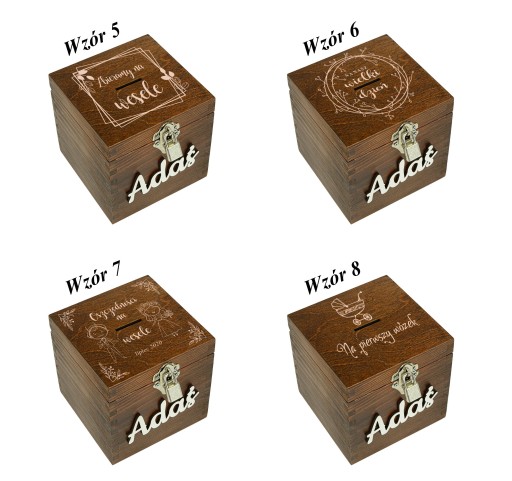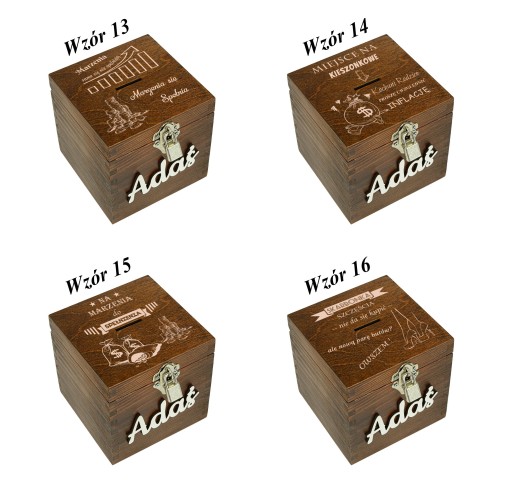 DREWNIANA SKARBONKA Z GRAWEREM ŚLUB CHRZEST