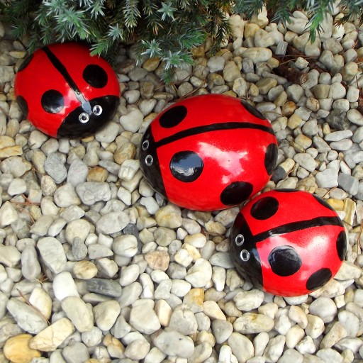 Biedronka ręcznie malowana, każda jest inna. Biedronki są duże i solidne. Figurki są odporne na warunki atmosferyczne i mogą zimować w ogrodzie. Doskonała dekoracja do Twojego domu ogrodu na balkon lub taras.