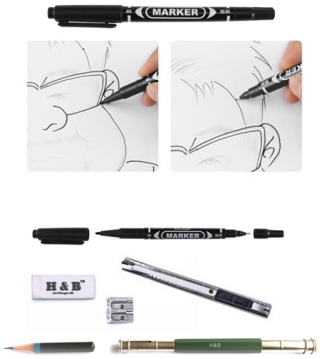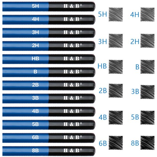 - 12 ołówków grafitowych:5H/4H/3H/2H/HB/B/2B/3B/4B/5B/6B/8B