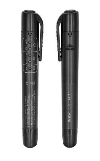 Tester płynu hamulcowego to urządzenie, dokonuje pomiaru stężenia procentowego wody w płynie hamulcowym. Płyn hamulcowy nie powinien zawierać więcej niż 1,5% wody, warunkowo dopuszczalna jest zawartość wody do ok 3%. Powyżej tej wartości płyn hamulcowy należy niezwłocznie wymienić.