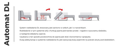 - Automat wspomagający rozkładanie - szybko i łatwo rozłożysz i złożysz mebel po spaniu
