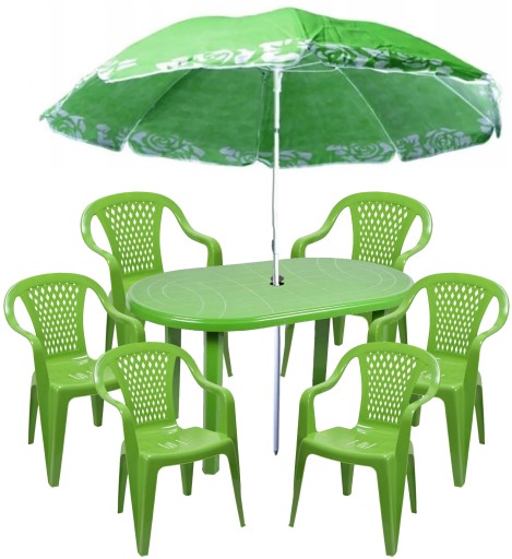 КОМПЛЕКТ 6+1 + СТУЛЬЯ-ЗОНТЫ САДОВЫЙ СТОЛ ЛАЙМ