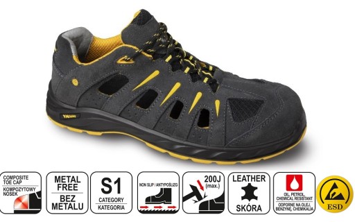 Konstrukcja S1 ESD SRA - z kompozytowym podnoskiem, właściwości antystatyczne ESD, antypoślizgowe, olejoodporne.
