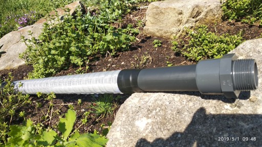 Filtr wykonany jest na atestowanej rurze ciśnieniowej PCV o średnicy 40 mm i długości czynnej 50 cm (całkowitej 80 cm) owiniętej siatką studniarską poliamidową o gęstości SP16 (16 splotów na cal), nie przepuszcza ona drobin piasku ani innych drobnych zanieczyszczeń. Pod siatką dodatkowo zastosowano owijkę z żyłki znacząco zwiększającą powierzchnię chłonną filtra. Siatka jest zabezpieczona wytrzymałą żyłką studniarską. Dzięki zastosowaniu odpornych tworzyw sztucznych okres eksploatacji filtra może wynosić nawet kilkadziesiąt lat!