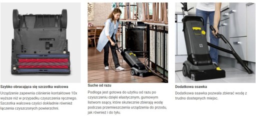 Doskonale sprawdza się w małych pomieszczeniach, gdzie konieczna jest łatwość manewrowania. Urządzenie szczególnie polecane jest firmom sprzątającym oraz branży restauracyjnej i hotelarskiej. Elastyczne, gumowe listwy ssące skutecznie zbierają wodę zarówno podczas przemieszczenia się urządzenia do przodu jak i do tyłu, pozostawiając podłogę niemal całkowicie suchą. Ten model wyposażony został dodatkowo w ręczną ssawę i pad z mikrofibry.