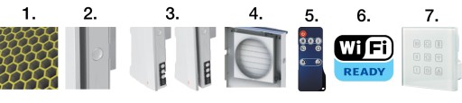 - Funkcja komunikacji przez sieć WiFi w celu zapewnienia skoordynowanego działania kilku jednostek wentylacyjnych