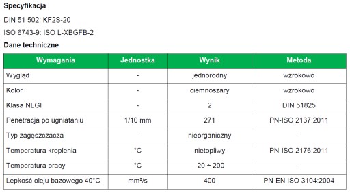 ZAKRES PRACY SMARU OD -20 DO 200 STOPNI C.