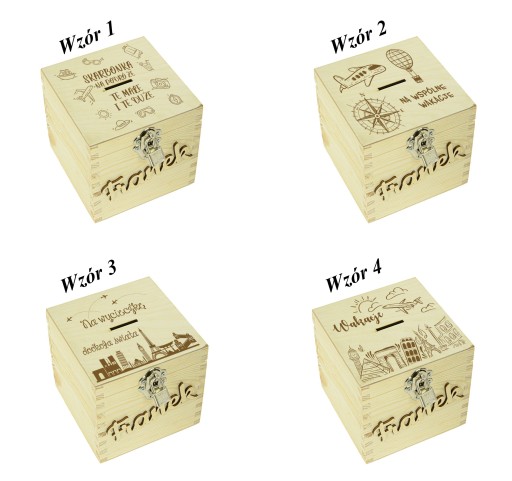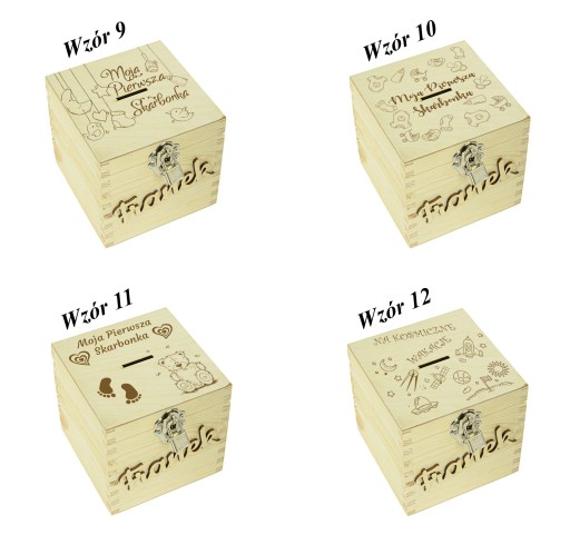 DREWNIANA SKARBONKA Z GRAWEREM ŚLUB CHRZEST