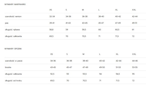 (wymiary mierzone na płasko z tolerancją rozciągnięcia - mierząc na sobie obwód mnożymy razy dwa)
