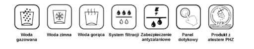 - Wskaźnik dla rodzaju wody: 3 rodzaje: gazowana, niegazowana, gorąca