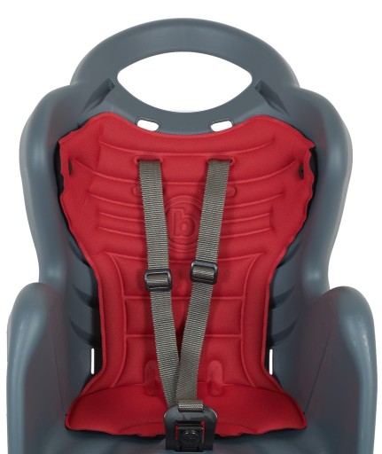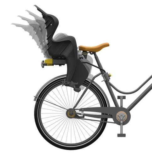 montaż na giętkim, stalowym pałąku, który doskonale amortyzuje wszelkie wstrząsy zapewniając dziecku wysoki komfort podczas wycieczek rowerowych