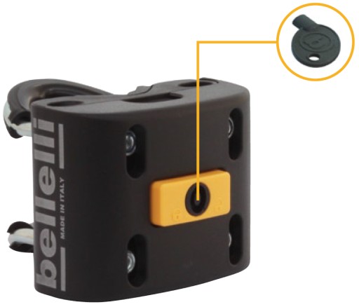 Mocowanie posiada zabezpieczenie antykradzieżowe zamykane na klucz uniemożliwiające nieuprawniony demontaż fotelika