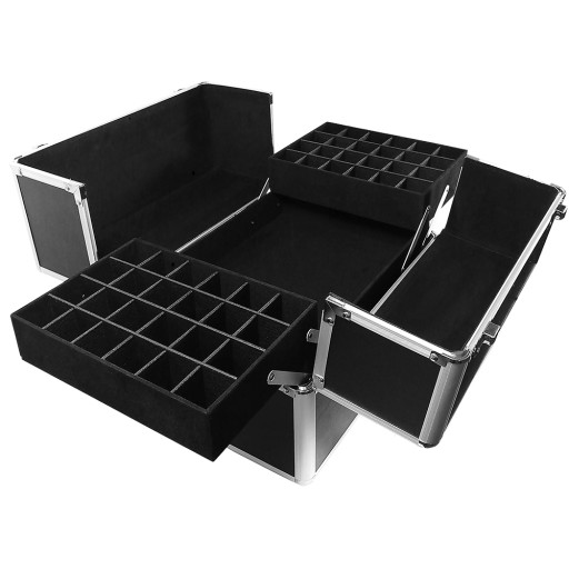Kuferek to idealny prezent dla mobilnej i stacjonarnej kosmetyczki jak i do użytku domowego, do przechowywania kosmetyków, lakierów, biżuterii i innych.