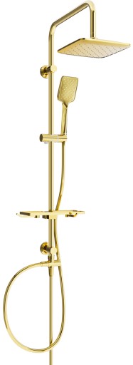 Mexen T62 kolumna prysznicowa z regulowanym uchwytem, wężem, deszczownicą, rączką oraz mydelniczką, złoty