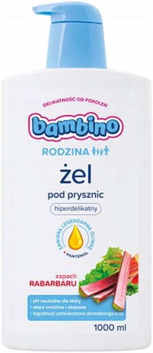 Łagodny żel pod prysznic i do kąpieli w wannie o zapachu świeżego rabarbaru do codziennego stosowania.
