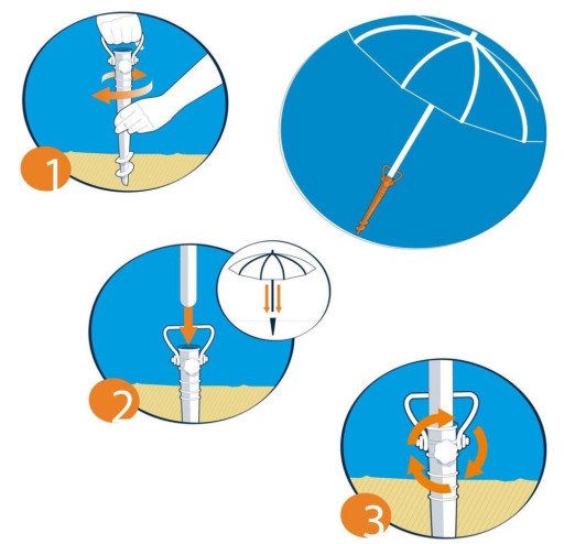 Uchwyt można bezproblemowo wkręcić w ziemię lub piasek. Pozwala to na rozstawienie parasola w miejscach oraz w sposób w jaki wcześniej było to niemożliwe. Można wkręcić uchwyt pod kątem. Dzięki temu sam parasol będzie znajdował się bezpośrednio nad Państwem.