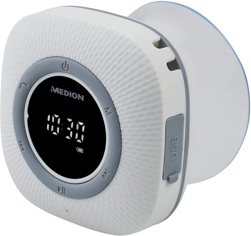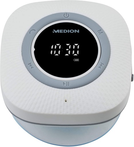 Bezprzewodowy głośnik Bluetooth Medion MD43881 pozwala na słuchanie muzyki pod prysznicem - wodoodporna konstrukcja i przyssawka do mocowania na ścianie sprawiają, że sprawdzi się idealnie podczas codziennych kąpieli. Wbudowana bateria o pojemności 1050mAh pozwala na długi czas odtwarzania muzyki.