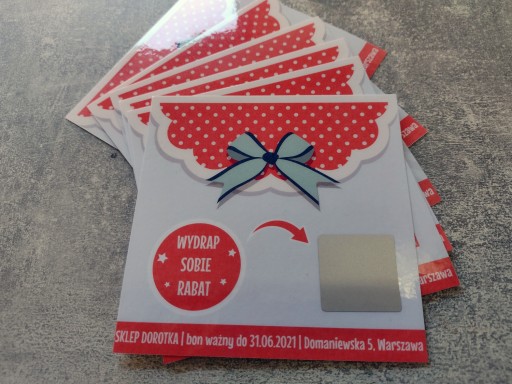 1 sztuka = 1 kupon ze zdrapką (minimalne zamówienie to 10 sztuk)