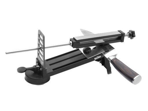 System składa się z polimerowej 3 płytek diamentowych, podstawy z przyssawką, ramki z nastawami kątowymi (10-30°) oraz prowadnicy, w której montujemy 1 lub 2 płytki diamentowe. Dzięki zastosowaniu mocnej przyssawki system można solidnie przytwierdzić do blatu lub stołu. Nóż mocujemy w podstawie za pomocą 2 blokowanych płytek zaopatrzonych w gumowe nakładki ochronne. Kolejnym krokiem jest umieszczenie płytki diamentowej (1 lub 2) w sprężynującym uchwycie prowadnicy oraz wybór kąta ostrzenia najlepiej pasującego do typu, oraz przeznaczenia noża. Polimerowa ramka ma 5 fabrycznie zdefiniowanych kątów: 10°, 12°, 20°. 25°, 30°. Zmiany kąta dokonujemy, umieszczając pręt prowadnicy w wycięciu o interesującym nas kącie. Z uwagi na możliwość mocowania w prowadnicy 2 płytek diamentowych jednocześnie, proces szlifowania jest bardziej stabilny i wygodniejszy.