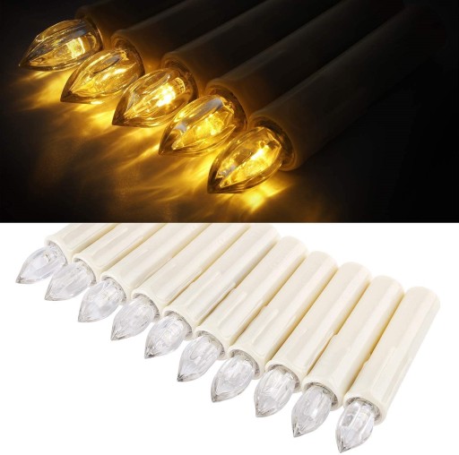 20szt. Klasyczne lampki choinkowe. Wymiary świec bożonarodzeniowych: ok. 10cm x 18mm. Barwa światła LED ciepła , wyglądają bardzo naturalnie jak prawdziwe świeczki na choinkę
