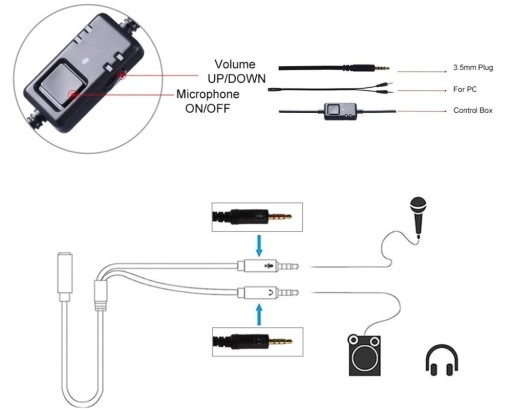 W zestawie jest także przejściówka do komputerów z osobnym podłączeniem słuchawek i mikrofonu.