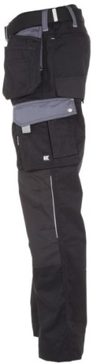 Spodnie posiadają praktyczne kieszenie na nakolanniki oraz wyprofilowany kształt kolana. Paski odblaskowe zapewniają lepszą widoczność użytkownika podczas pracy. Wysokiej jakości zamki błyskawiczne YKK przedłużają żywotność odzieży. Spodnie wyposażone zostały w nylonowy pasek.