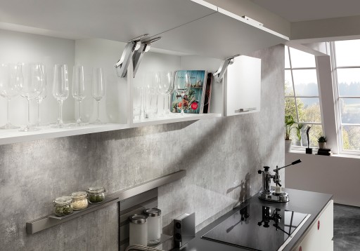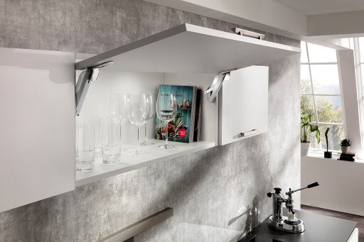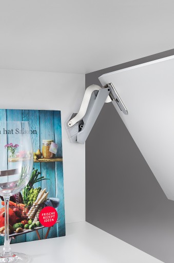 Podnośnik do frontu HAFELE Free Space 1.11 jest najmniejszym dostępnym podnośnikiem na rynku, który umożliwia udźwig frontu do 10,7 kg.