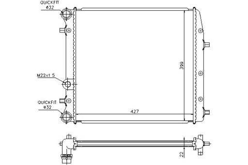- Wymiary radiatora: 430 X 406 X 22 mm