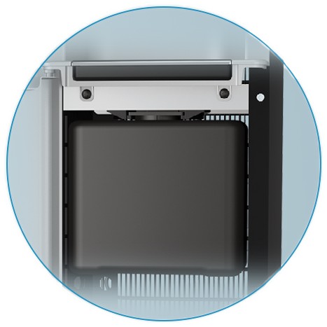 ✓ Wewnętrzny ociekacz o dużej pojemności - ociekacz schowany za drzwiczkami frontowymi posiada pojemność aż 2 litrów, co zmniejsza częstotliwość jego opróżniania. Ociekacz posiada unikatowe wśród dystrybutorów rozwiązanie w postaci ochrony przed przelaniem.