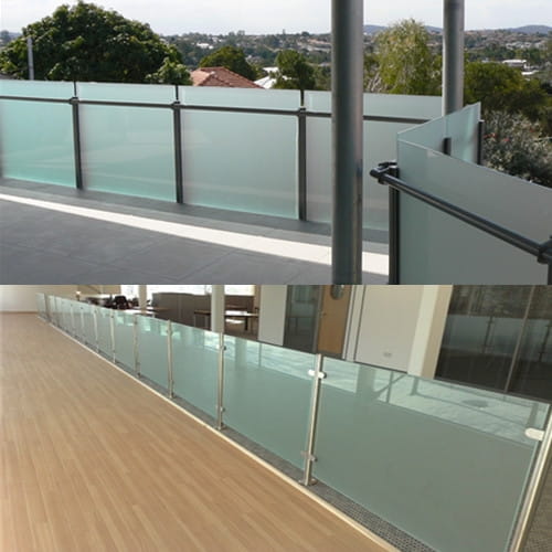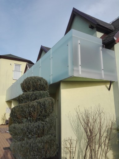 Balustrada nierdzewna słupki kwadrat ze szkłem matowym, mocowanie do boku
