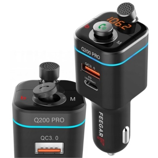 Feegar Q200 Pro to najnowsza wersja zestawu głośnomówiącego Bluetooth z transmiterem FM marki Feegar. Jest to Polska marka w branży elektroniki użytkowej. Q200 Pro to następca popularnego modelu Q100 Pro, który stał się hitem w swej kategorii produktowej. Nowy model dodatkowo został wzbogacony o: kierunkowy mikrofon HD (Directional HD Microphone), szybsze ładowanie: max. 42W oraz obsługę kart pamięci microSD do 64GB.