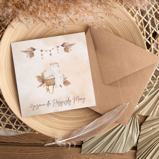 KARTKA z życzeniami na Baby Shower Boho (+koperta kraft)