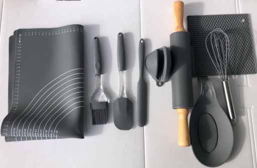 Niezastąpiony w kuchni zestaw 9 elementowy wykonany z silikonu.