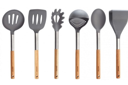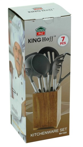 Komplet przyborów kuchennych z pojemnikiem drewnianym 7 elementów.