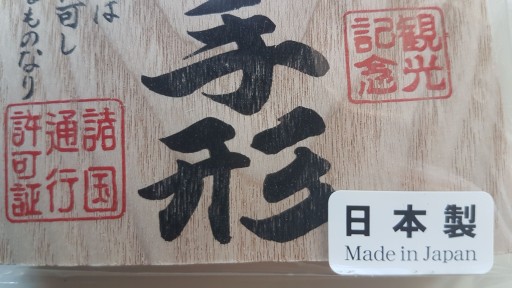 Przedmiotem oferty jest wspaniała, trudna do zdobycia pamiątka z Kioto (Kyōto) - Tsūkō Tegata (通行手形). Są to oryginalne, japońskie "drewniane paszporty", które przypominają nam okres Edo. Ten specyficzny przedmiot można znaleźć przy buddyjskim kompleksie świątynnym Kiyomizu-dera (清水寺; Świątynia Czystej Wody; wpisany na listę światowego dziedzictwa UNESCO), oficjalnie zwanym Otowa-san Kiyomizu-dera (音羽山清水寺). Jest bardzo ważnym miejscem dla Japończyków i popularną atrakcją turystyczną, zwłaszcza w okresie świąteczno-noworocznym czy letnim – podczas Obon (お盆; można też powiedzieć Bon; jest to buddyjskie Święto Zmarłych). Tsūkō Tegata są nowe, zapakowane, nigdy nie były otwierane. Przedmiot nie do zdobycia w Polsce (dostępny tylko w jednym miejscu na świecie), idealny na prezent czy ozdobę w domu – prawdziwa pamiątka z Japonii.
